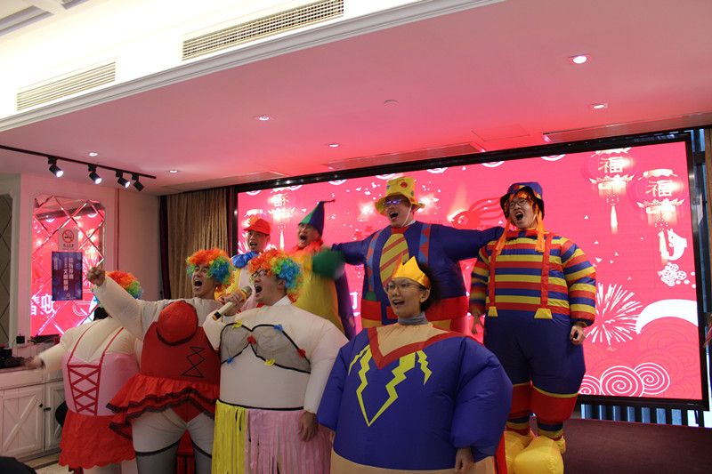 由安顺船务员工创作、表演的配乐诗朗诵《我们》,获得了满堂喝彩;由集团4位员工领唱、全体参与的合唱《不放弃》,彰显了安顺人不畏艰难、团结一心的凌云壮志;由总裁助理导演、策划的,由市场营销部、航运操作事业部7位员工扮装出演的神秘节目---《热舞串烧》,直接嗨翻全场,将晚会推向高潮。