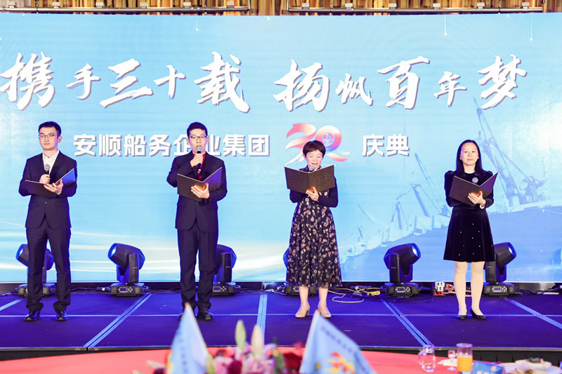 2024年11月8日晚上,安顺船务企业集团三十周年庆典晚会在上海威斯汀大饭店三楼钻石厅隆重举行。集团上海总部全体员工、各地分公司员工及合作伙伴代表、客户代表被诚挚邀请欢聚一堂,大家在洋溢着热烈、欢庆气氛的场景下,共同回顾往昔、交流收获、展望未来、共叙情怀。