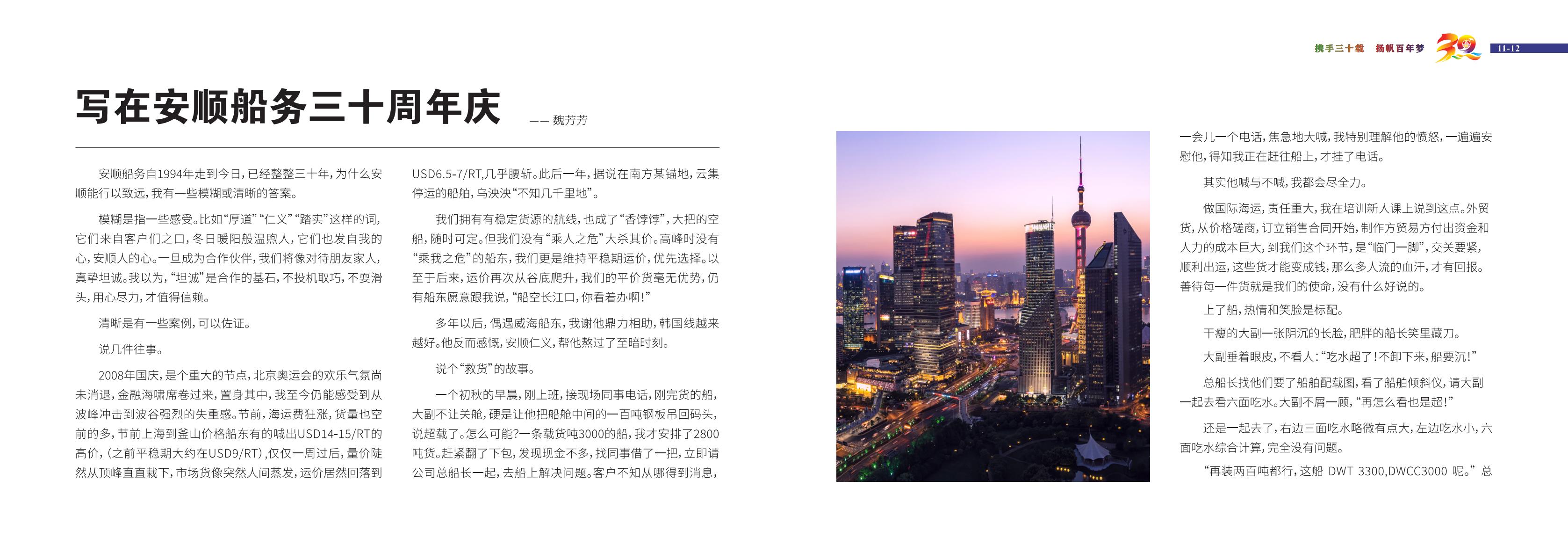 2024年10月,从中精心挑选的优秀征文寄语将在安顺内部电子刊物上精彩呈现。同时,我们还将汇总所有优秀作品印刷成册,作为安顺的企业文化记忆遗产,激励后来者继续前行,在追求卓越的道路上,不断扬帆远航,共筑百年辉煌之梦。